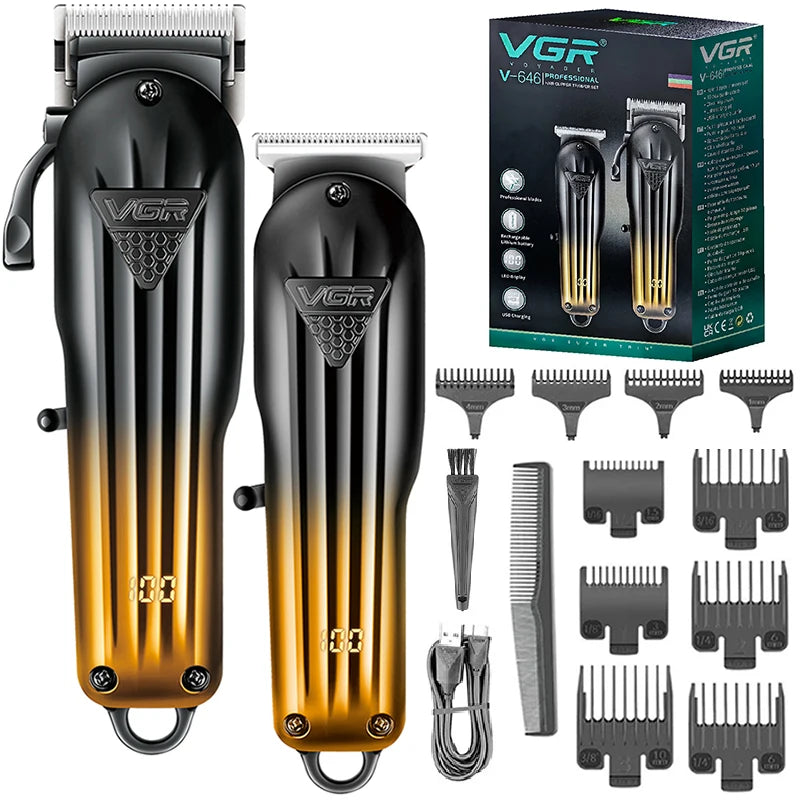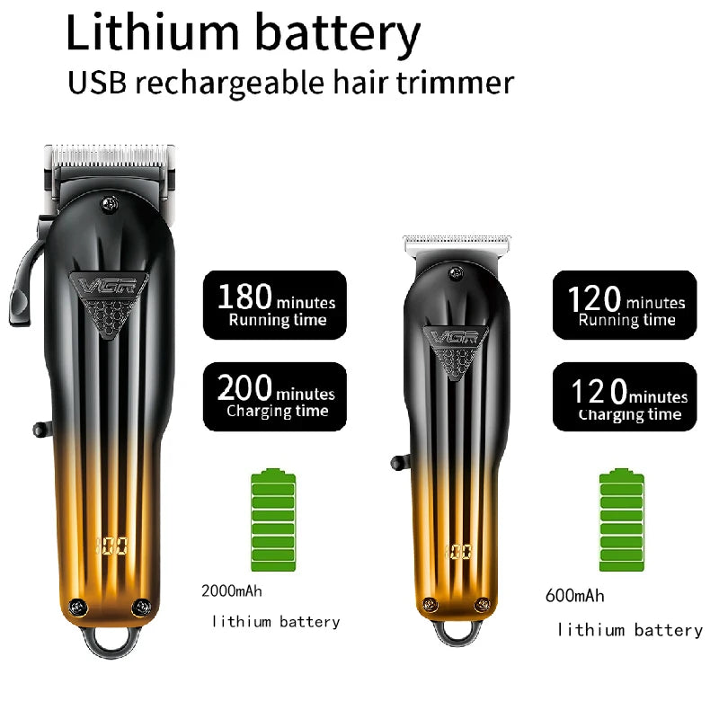 Máquina de Corte Original VGR, Electric Hair Clipper Kit, Recarregável.