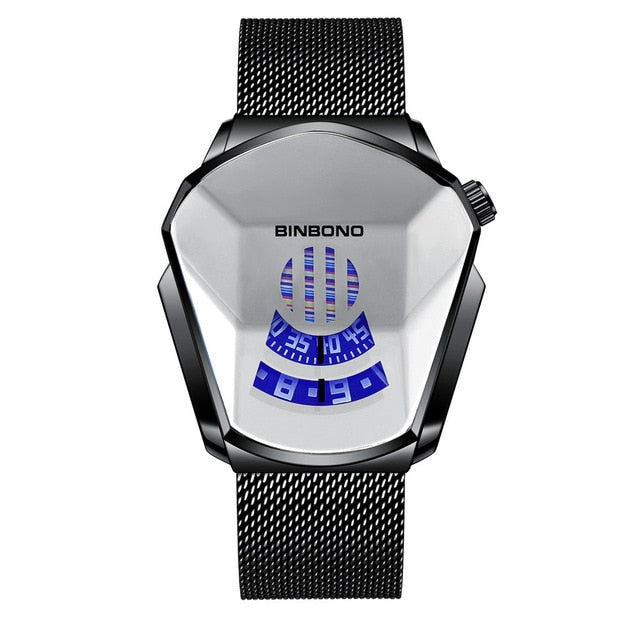 Relógio de quartzo aço luminoso banda malha relógio Touch Screen preto tecnologia relógio
