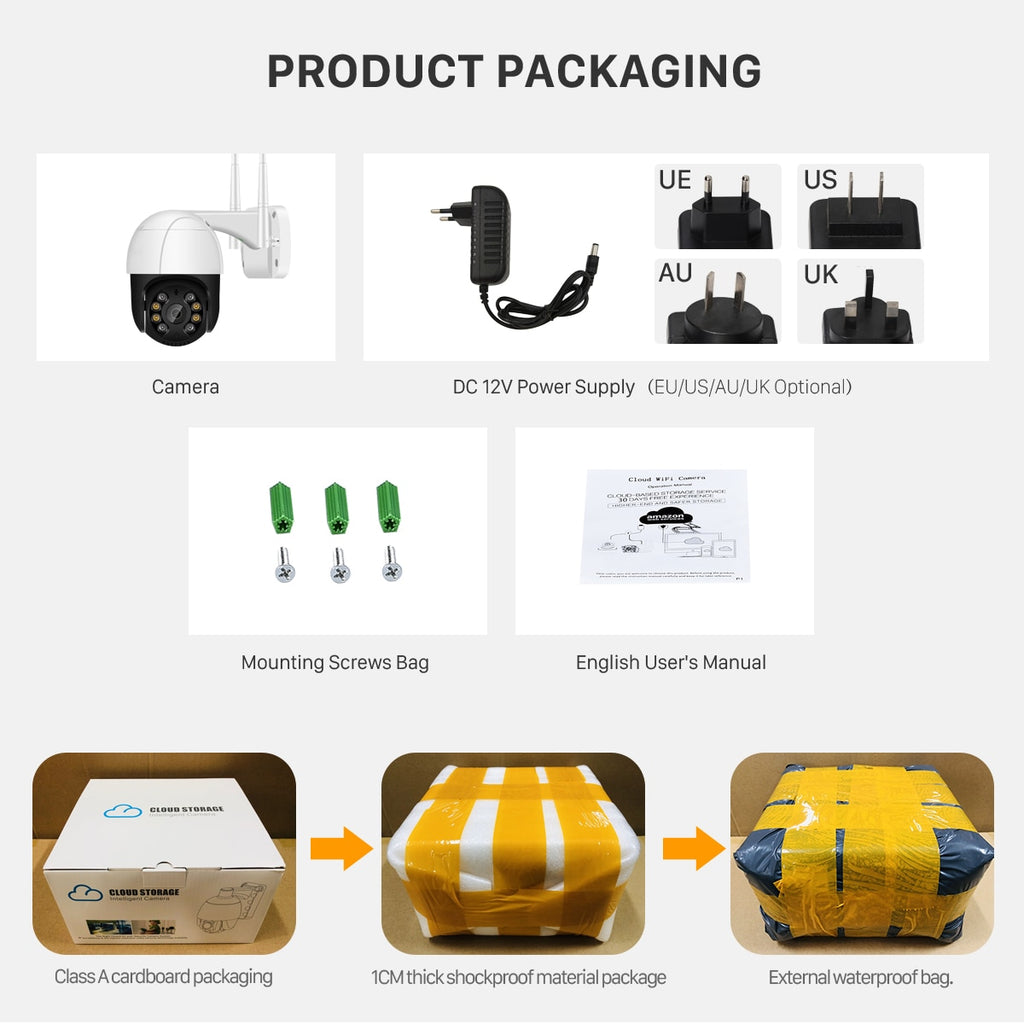 Câmera 1080P PTZ Wifi IP Outdoor 4X Digital Zoom AI Human Detect Wireless Câmera H.265 P2P Audio 2MP 3MP Security CCTV Câmera