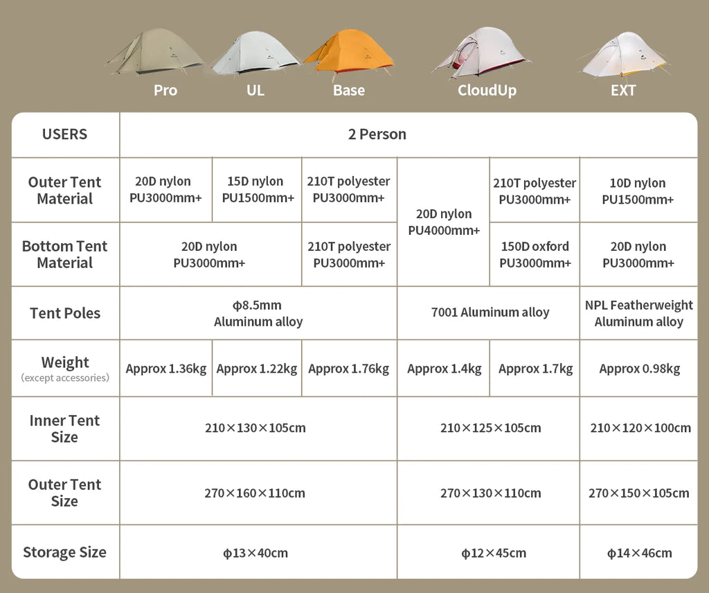 Capacidade Cloud Up 2: Barraca para 1-2 pessoas