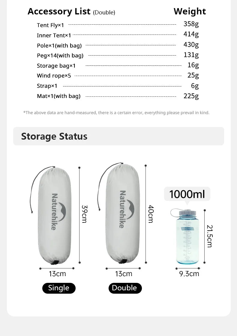Barraca de Caminhada para Área Externa: Barraca de Camping Ultraleve