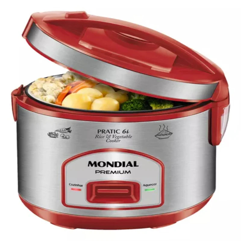 Panela Elétrica De Arroz Pratic PE-45-6x 220v RECEITAS MAIS SAUDÁVEIS E SABOROSAS DE MANEIRA MAIS PRÁTICA! A Panela Elétrica De Arroz Pratic PE-45-6x 220v torna a tarefa de cozinhar mais prazerosa. Com 500W de potência, o equipamento tem capacidade de até 6 xícaras de arroz, garantindo um cozimento perfeito dos grãos sem deixá-los com aspecto papa. Para mais segurança, ela tem botão de travamento e válvula de vapor. Além disso, sua cuba com revestimento antiaderente facilita a limpeza e não deixa os grãos grudarem no fundo, impedindo desperdícios. ESPECIFICAÇÕES: Marca: Modelo: PE-45-6x Cor: Vermelha/Inox Potência: 500w Voltagem: 220V : Polipropilenos e Inox CARACTERÍSTICAS: Capacidade de 6 xícaras Mantém os Alimentos Aquecidos Tampa com Válvula para Saída de Vapor Revestimento Antiaderente Pode ser Levado à Mesa Trava de Segurança Lâmpadas-piloto que indicam o funcionamento DIMENSÕES E PESO: Altura: 24,5 cm Largura: 25,5 cm Profundidade: 23,5 cm Peso: 1,7 kg Comprimento do cabo: 1,50 metros O QUE VEM INCLUSO? 1 Panela Elétrica De Arroz Pratic PE-45-6x 220v 1 Copo Medidor 1 Colher 1 Manual de Instruções
