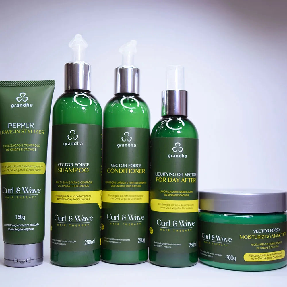 - Após lavar os cabelos com o Vector Force Shampoo, aplique o Vector Force Conditioner nos cabelos molhados e massageie-os delicadamente mecha a mecha, até o total desembaraço manual dos fios, sem auxílio de pente ou escova. Remova o excesso de produto com uma toalha. Seque os cabelos com auxílio de um secador com difusor em temperatura e potência médias.