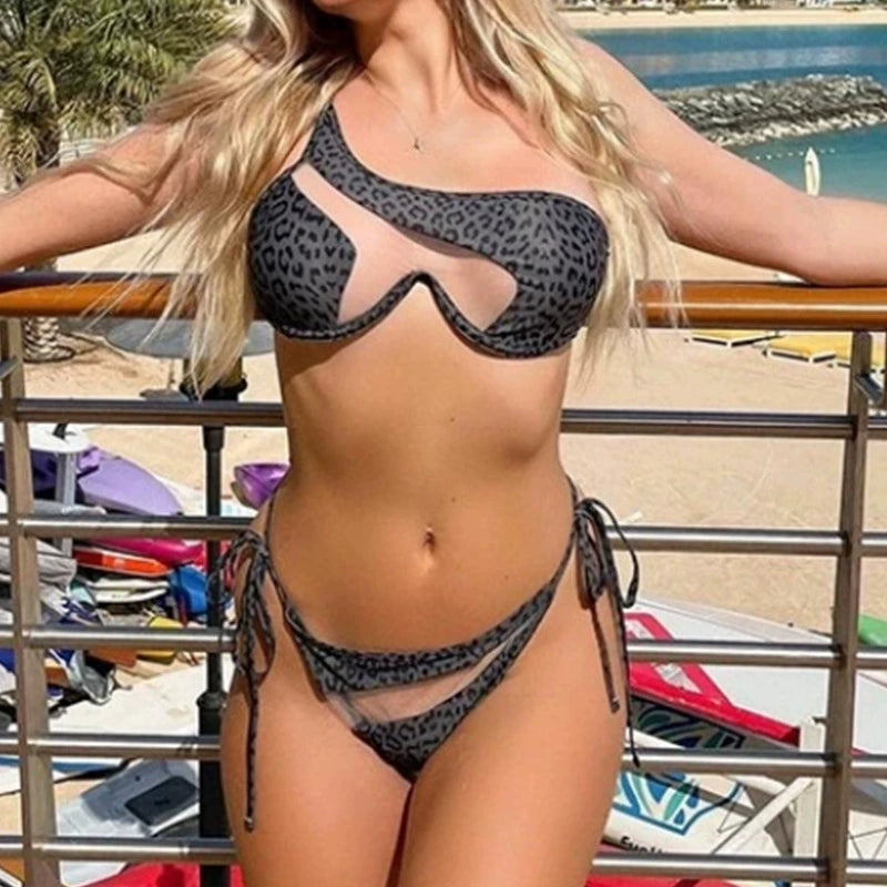 European and American Foreign Trade Cross-Border AliExpress Mesh Belt Chest Pad Sexy Split Swimsuit Lace Bikini Swimsuit Bikini