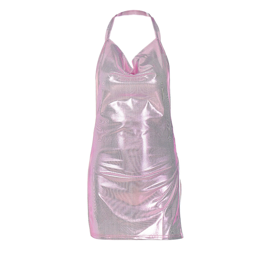 Bling glitter halter mini vestido feminino fenda lateral sem costas bodycon sexy streetwear festa clube roupas de verão